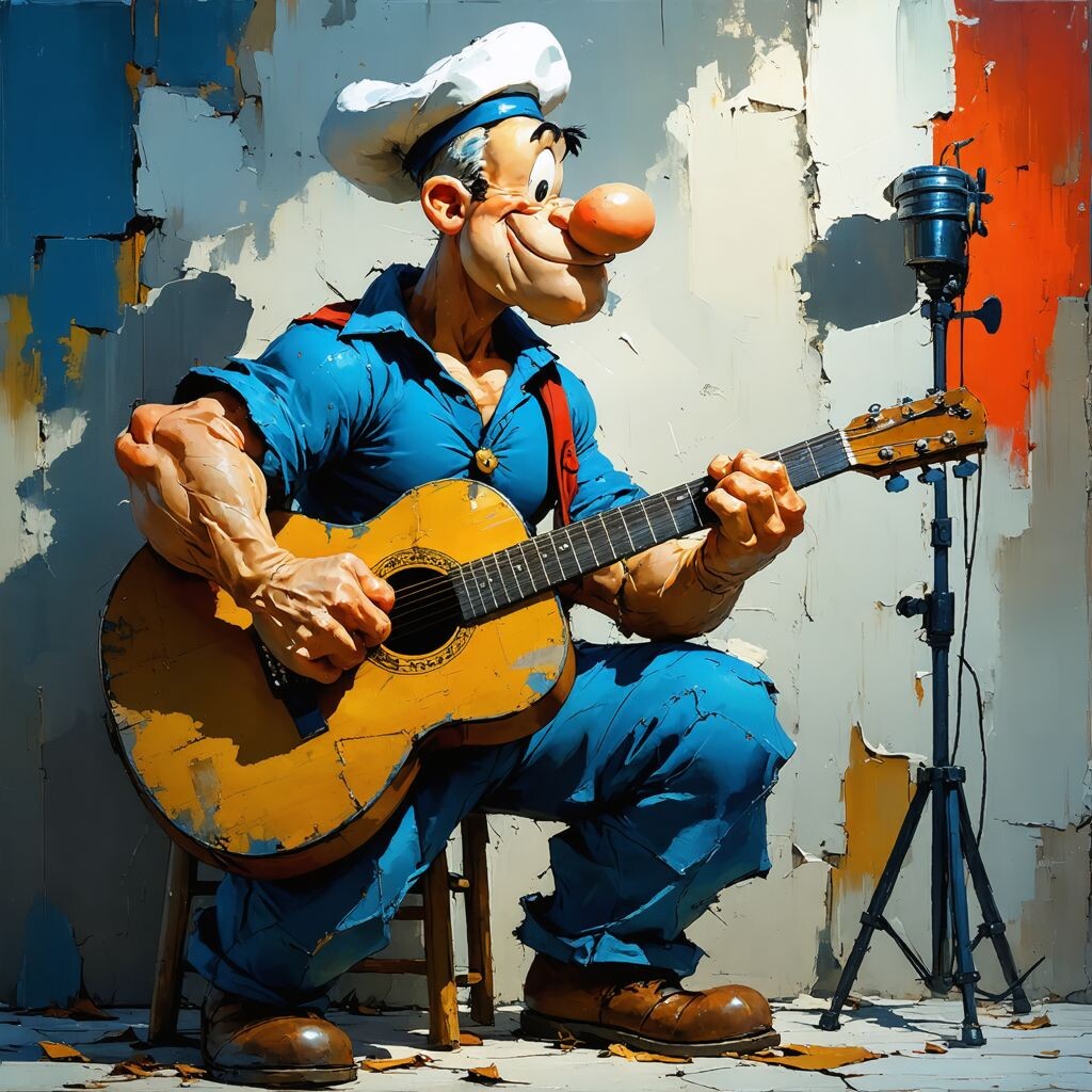 Конечно! Если бы Попай Моряк решил стать гитаристом, шпинат точно помог бы ему в исполнении скоростных пассажей. После банки шпината его пальцы стали бы настолько быстрыми и точными, что он мог бы играючи исполнять даже самые сложные техники: Более того, его выносливость позволила бы играть часами без устали, а усиленная координация сделала бы его игру безупречной. Можно сказать, что Попай стал бы настоящим гитарным супергероем, способным затмить даже самых техничных гитаристов мира! Представьте себе сцену: Попай Моряк выходит на сцену с электрогитарой, а не с банкой шпината. И что начинается! Концертные байки стали бы легендарными: Технические особенности его игры: Концертные перформансы: Профессиональные достижения: А когда он уставал от скоростных пассажей, просто открывал еще одну банку шпината - и снова был готов к новым музыкальным подвигам! Говорят, что после концертов он даже мог играть на гитаре одной рукой, пока другой открывал новую банку шпината... Вот это я поним
