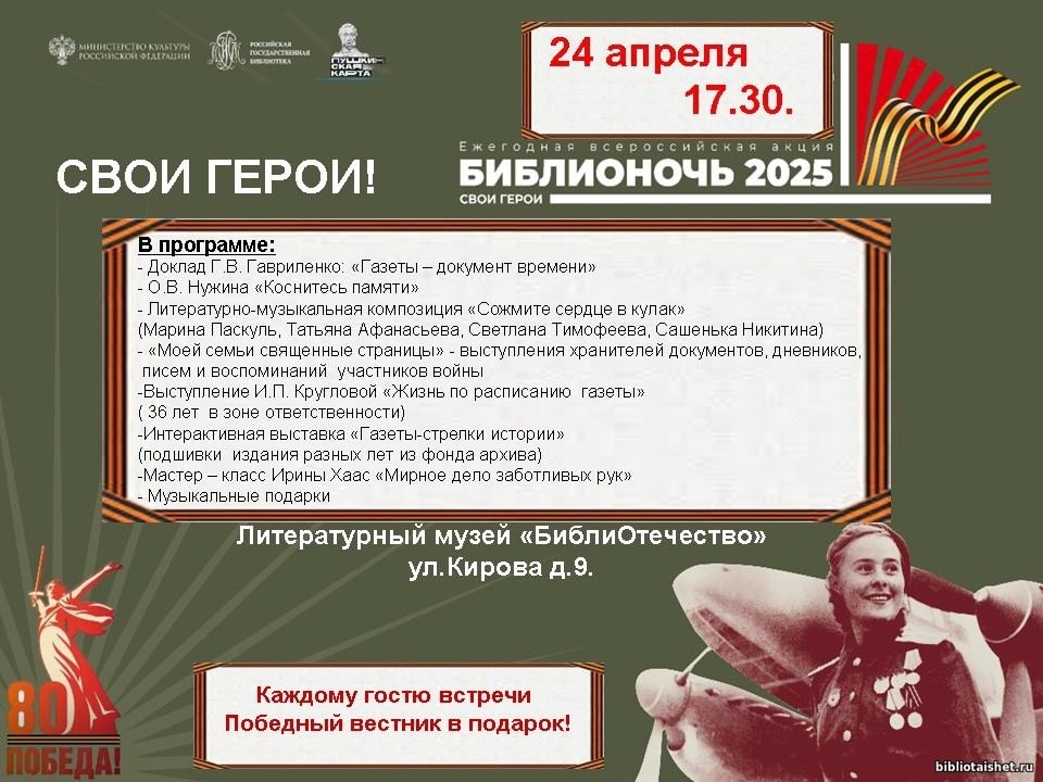 ΠΌΠ΅ΡΠΎΠΏΡΠΈΡΡΠΈΠΉ - Β«Π‘Π²ΠΎΠΈ Π³Π΅ΡΠΎΠΈΒ». 24 Π°ΠΏΡΠ΅Π»Ρ Π² 17.30 Π»ΠΈΡΠ΅ΡΠ°ΡΡΡΠ½ΡΠΉ ΠΌΡΠ·Π΅ΠΉ Β«ΠΠΈΠ±Π»ΠΈΠΡΠ΅ΡΠ΅ΡΡΠ²ΠΎΒ» ΠΏΡΠΈΠ³Π»Π°ΡΠ°Π΅Ρ ΠΏΠΎΠ³ΠΎΠ²ΠΎΡΠΈΡΡ ΠΎ Π²ΠΎΠΉΠ½Π΅ Π±Π΅Π· ΡΠΆΠ°ΡΠ° ΠΈ ΡΡΡΠ°Ρ