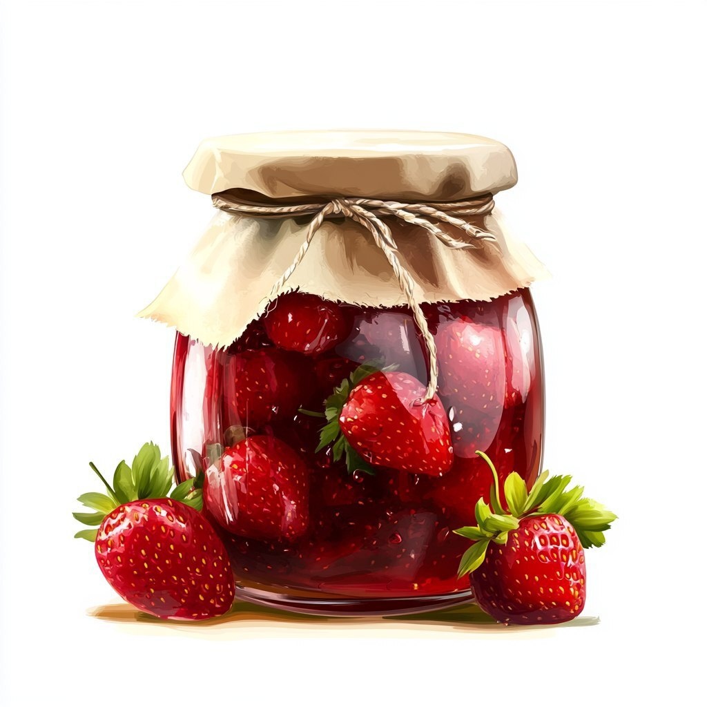 Создано на основе запроса: Beautiful jar of strawberry jam, wheit background