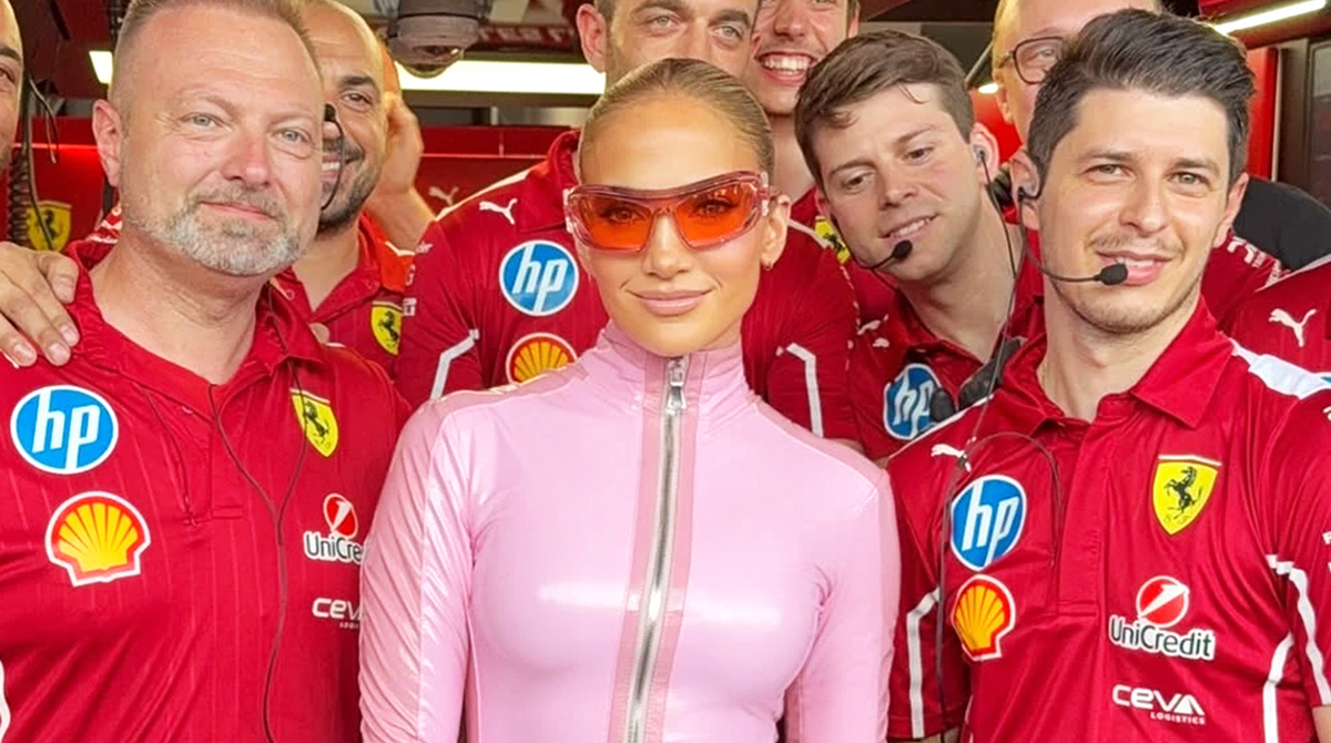 Звезда поддержала команду Ferrari на этапе «Формулы-1». Она выбрала дерзкий латексный комбинезон нежно-розового цвета. Немного вайбов Барби! Наряд плотно облегал фигуру Лопес и явно отвлекал гонщиков от соревнования. Также не можем не отметить её стильные солнцезащитные очки и креативные прозрачные босоножки на экстремально высоких каблуках. Скорее оцени!