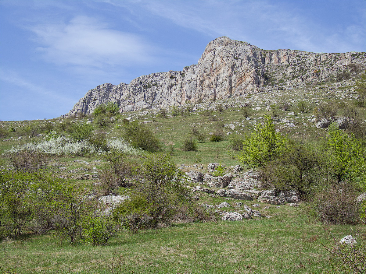 Над Эклизи-Буруном по синему небу бежали облака. Бежали-бежали — да и накрыли солнце, погрузили Чатыр-Даг в тень. А мы тем временем были уже в можжевельниках, и Лена поприветствовала снежник — приятно всё-таки повстречать снег среди жаркой весны! И, не удержавшись, совсем по-детски съела щепотку белоснежного, похрустывающего кристалликами снега!