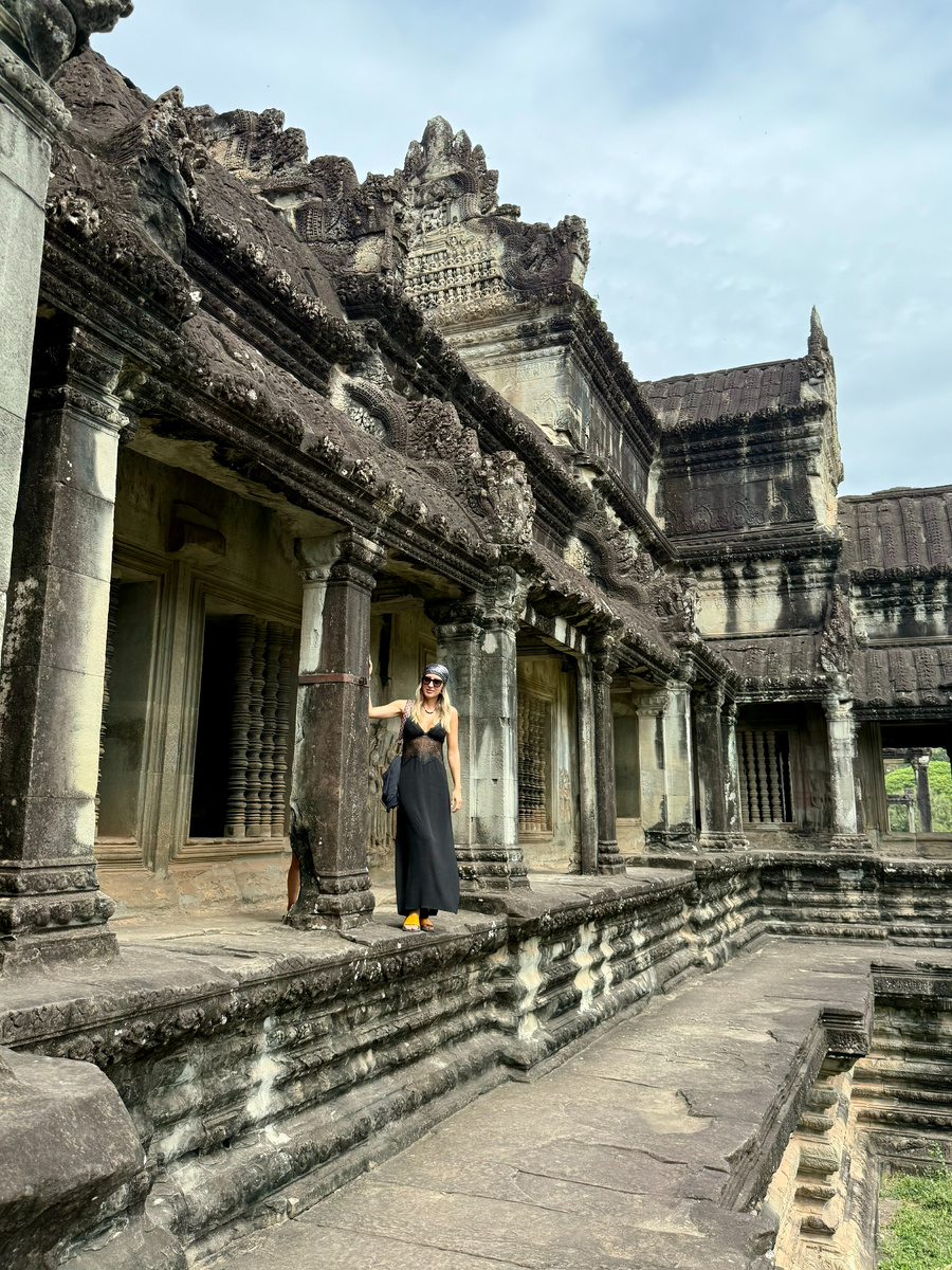 Ангкор Ват имеет форму трехступенчатой пирамиды. Стены его покрыты искусной резьбой. Наиболее часто встречающаяся фигура здесь — это фигура апсары — богини, небесной танцовщицы. Их здесь тысячи, ни одна из них не похожа на другую. Я не видел отличий. Пока не стал внимательно присматриваться. У них разное выражение лиц, разные фигуры, украшения. Один пояс не похож, например, на другой. Отличаются браслеты на плечах. Если внимательно посмотреть на головные уборы, то они тоже отличаются друг от друга.