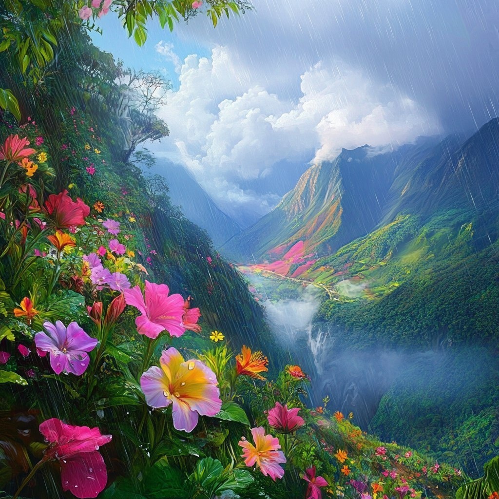 Создано на основе запроса: beautiful colorful South America state spring's flowers, leaves, nature, beautiful rain drops, beautiful