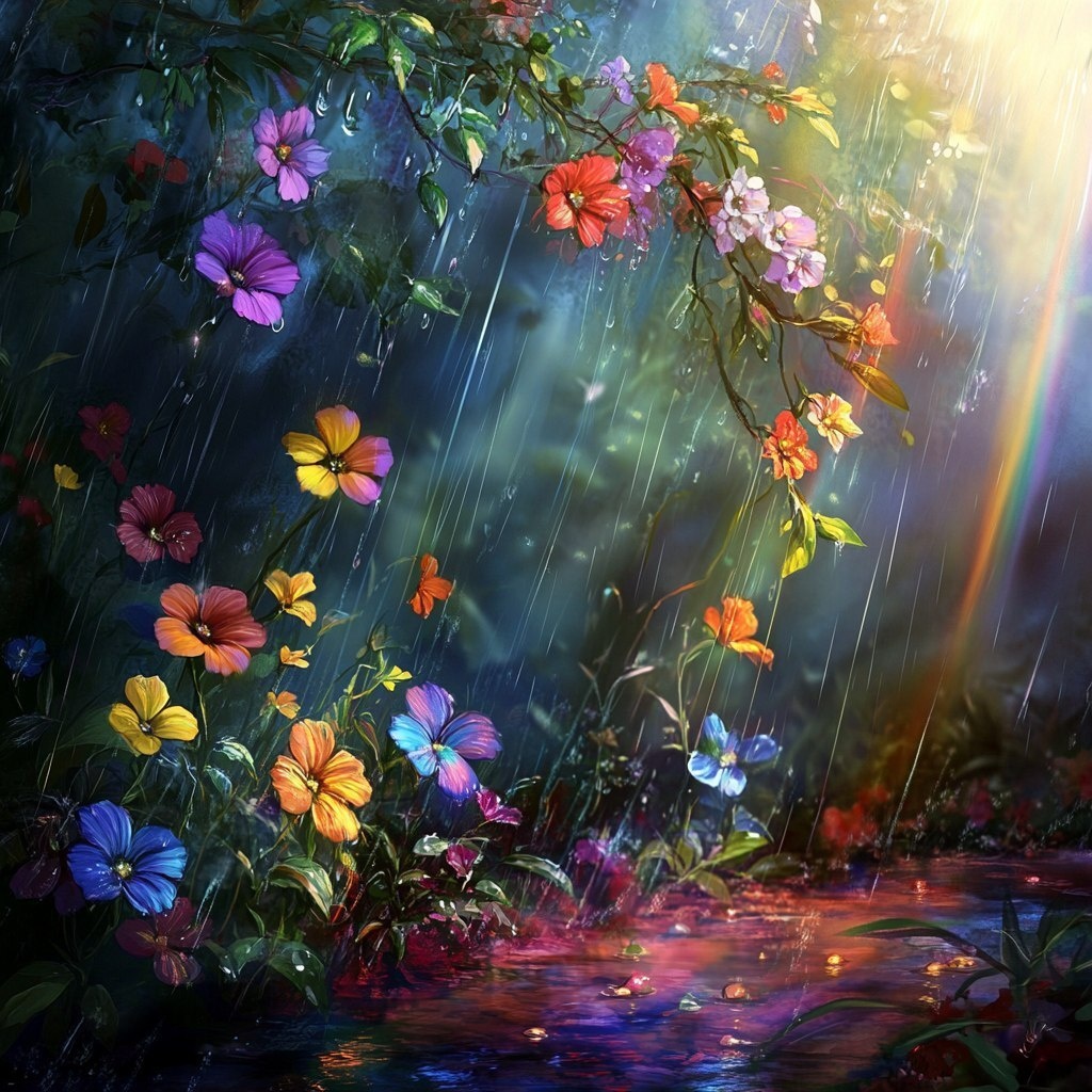 Создано на основе запроса: beautiful colorful North American state spring's flowers, leaves, nature, beautiful rain drops, beautiful