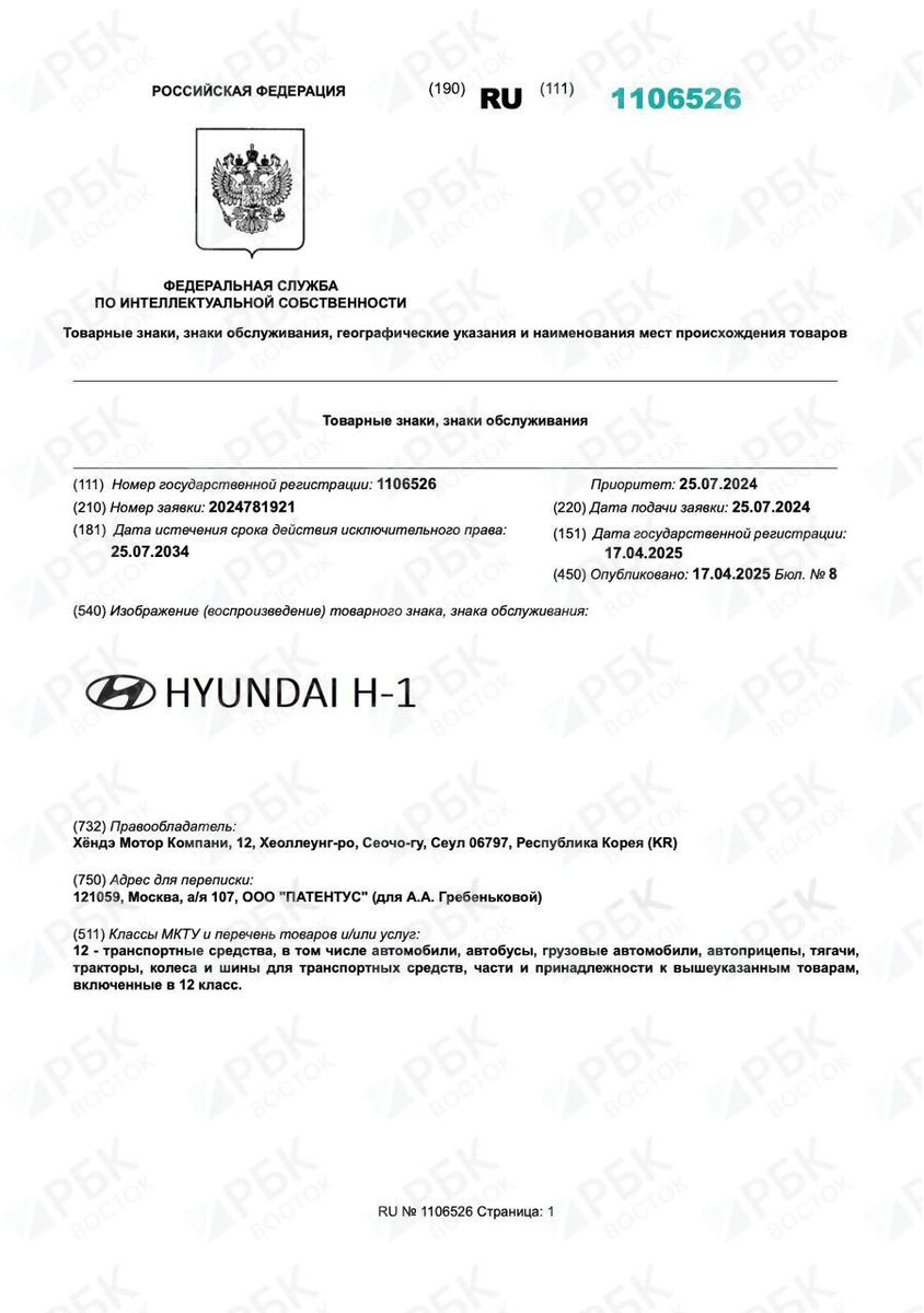 В ответ на пост ❗️Южнокорейский Hyundai зарегистрировал не менее трех новых товарных знаков в России, выяснил РБК Восток Автопроизводитель подал заявки на регистрацию еще в 2024 году, однако Роспатент одобрил их только 17 апреля 2025-го. Срок действия регистрации – 2034 год. 🍱Подписывайтесь на РБК Восток