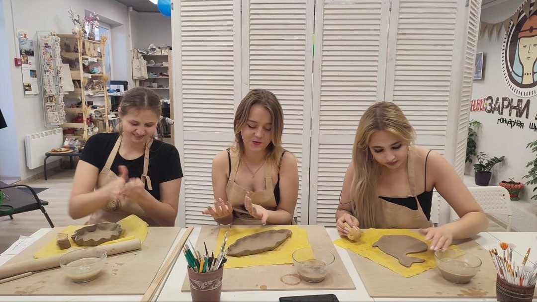 Три подруги — Саша, Аня и Камилла — решили попробовать себя в керамике. Пришли на пробное занятие, и… влюбились в процесс 😍 Каждая создала свою уникальную тарелочку, а потом расписала её ангобами — это как рисовать по бумаге, только ещё круче!