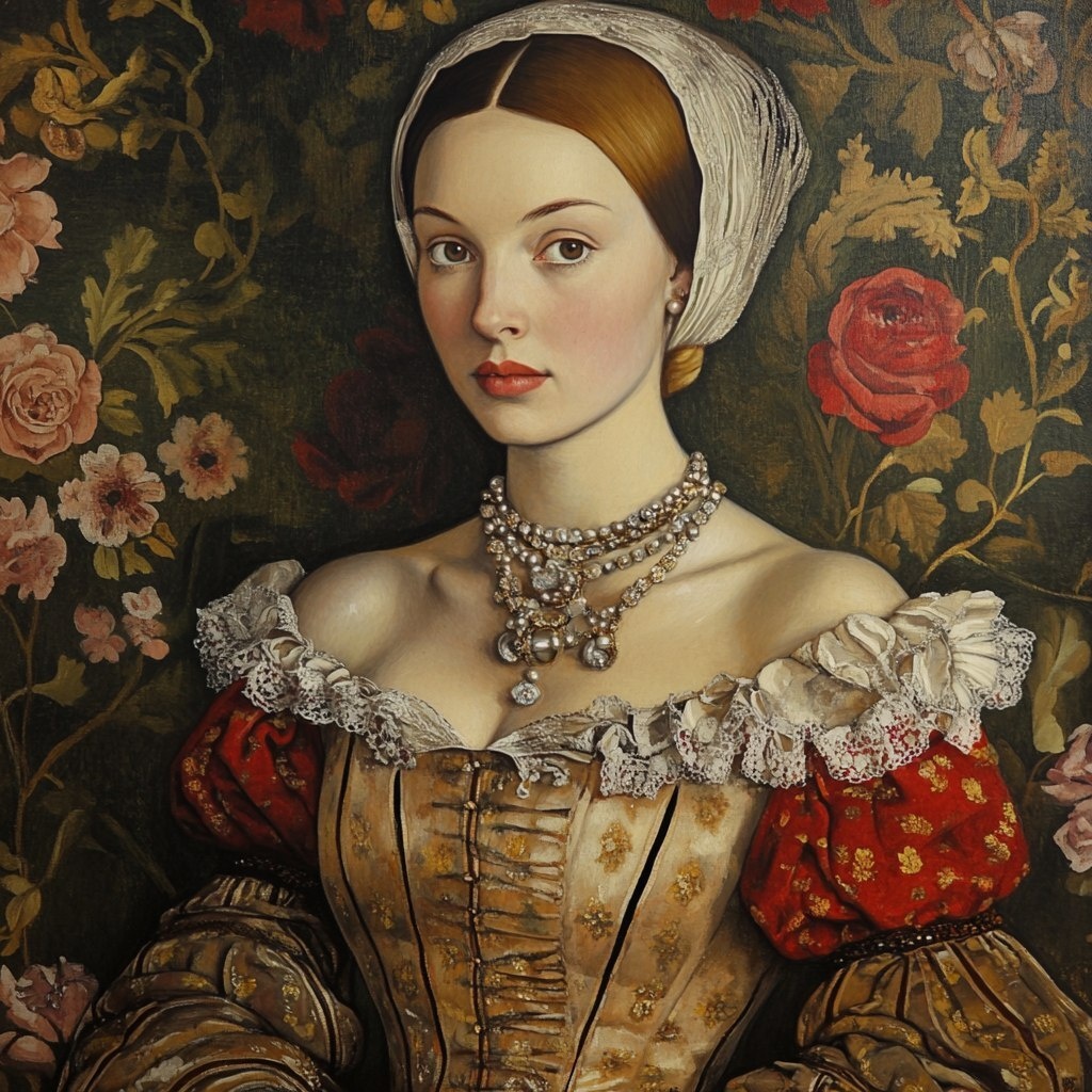 Создано на основе запроса: Portrait of Henry VIII's First Lady,oil painting