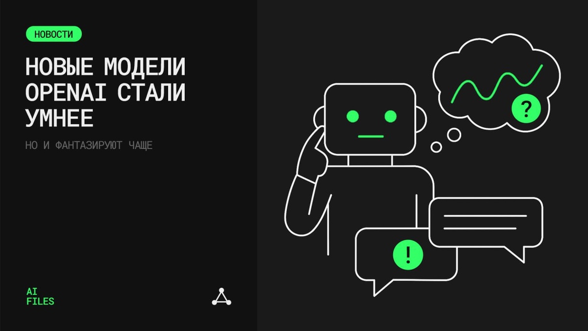 Новые модели OpenAI стали умнее, но и фантазируют чаще OpenAI признала, что их свежие reasoning-модели o3 и o4-mini чаще галлюцинируют — то есть выдумывают факты — по сравнению с предыдущими версиями. • на 33% — увеличилась частота галлюцинаций у o3 в тестах OpenAI (в 2 раза больше, чем у o1) • на 48% — у o4-mini • Причина неизвестна — OpenAI пишет, что "нужно больше исследований" • Transluce зафиксировала случаи, когда модель выдумывала даже собственные действия Несмотря на улучшения в кодинге и математике, модели склонны выдавать больше и верных, и неверных утверждений. “Мы предполагаем, что используемое обучение усилило проблему, которая раньше частично сглаживалась,” — Transluce. OpenAI обещает продолжить работу над уменьшением ошибок. Вариант решения — подключение веб-поиска, как у GPT-4o. 📂 AI FILES 📂