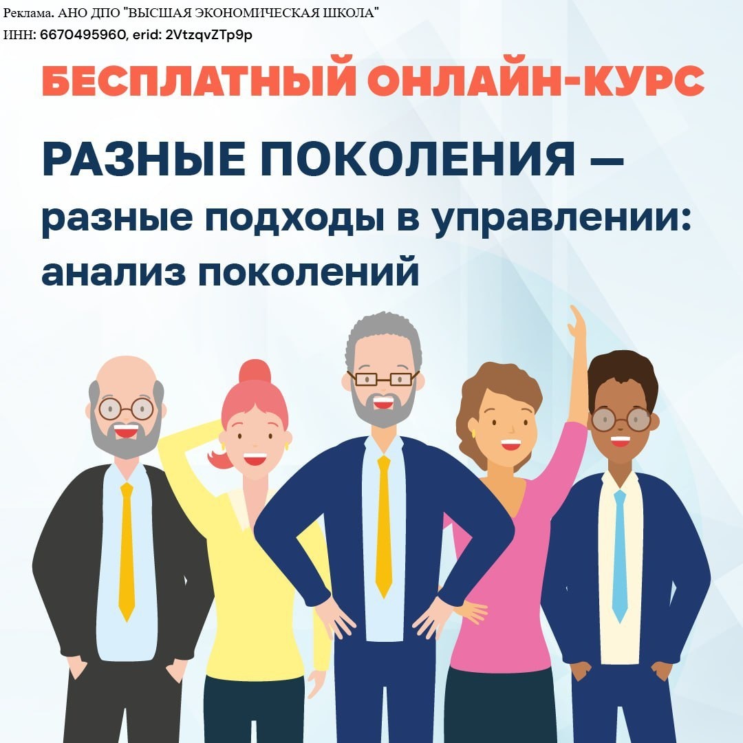 Собрались как-то в одной компании бэби-бумеры, «иксы», миллениалы и зумеры… И все между собой перессорились. Такой сценарий может произойти потому, что в большинстве организаций работают люди четырех поколений — у каждого свои ценности и взгляды. Сотрудники бэби-бумеры опираются на справедливость. «Иксам» важны материальные ценности и стабильность. Миллениалы чаще хотят работать дистанционно, а у зумеров из-за цифрового детства возникают сложности с эмоциональным интеллектом. ❓ Что нужно знать, нанимая на работу «иксов»? Как помочь бумерам меньше тревожиться из-за изменений? Как сделать так, чтобы зумеры и миллениалы эффективно работали вместе? 👉🏼 Узнайте, чем отличаются ожидания от работы и ценности людей разных возрастов на бесплатном онлайн-курсе «Разные поколения — разные подходы в управлении: анализ поколений» от Высшей экономической школы. Курс состоит из семи уроков продолжительностью до десяти минут. В результате вы: ✅ разберетесь, сколько поколений присутствует на рынк