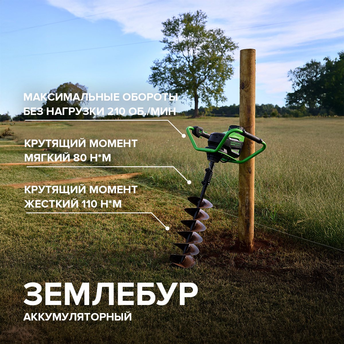 Аккумуляторный землебур Greenworks GC-AUGER (арт. 3707907), 82V — это профессиональная техника для бурения ям под сваи или для посадки растений, рытья траншей, сверления рыболовных лунок и тому подобных работ. Мощный бесщёточный двигатель DigiPro обеспечивает валу диаметром в 20 мм скорость вращения в 210 об/мин. Стандартный шнек позволяет бурить отверстия диаметром в 200 мм. Аккумуляторный землебур Greenworks выгодно отличается от бензиновых аналогов. У устройства есть функция реверса, позволяющего вытащить шнек из сложного грунта, а также инновационная защита от отдачи, реализованная при помощи встроенного акселерометра. Кроме того, в бур встроена защита от перегрузки и перегрева, электронный тормоз для быстрой остановки вала и подсветка рабочей зоны. А плавный пуск позволяет избежать рывков и перегрузок. Устройство совместимо со всеми аккумуляторами платформы Greenworks Commercial 82V. РРЦ: 39 990 руб. Приобрести технику можно тут поставляется без АКБ и ЗУ. поставляется без АКБ и З
