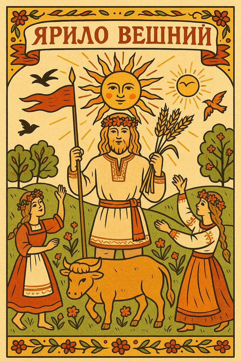 23 апреля по славянскому календарю отмечают Ярило Вешний — древний праздник, посвящённый богу весеннего солнца, плодородия и жизненных сил. Ярило — это огонь, что растапливает снег; свет, что зовёт всё живое пробуждаться; радость, что наполняет сердца. Его день — середина весны, когда земля оживает и всё тянется к свету. В народной традиции Ярило — это юный солнечный бог, символ мужской силы, весеннего обновления и плодовитости. Его образ — красивый юноша с пшеничными волосами, в белой рубахе, венке и с колосьями в руках. Он несёт жизнь, страсть и рост, он "вспахивает" землю, чтобы всё родилось и дало плод. Ярило — воплощение солнечного жара, не только греющего, но и зажигающего: страсть, вдохновение, рост. В славянских песнях его часто призывают, как жених землю-матушку, который приходит в разгар весны, чтобы соединиться с ней в священном союзе плодородия. Считалось, что с этого момента начинается настоящий рост, цветение и заклад будущего урожая. С Ярилова дня начинались серьёзные по