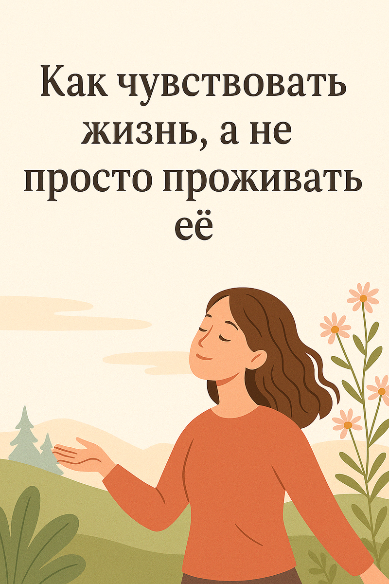 Иногда кажется, что дни сливаются в одну бесконечную череду дел. Утро, заботы, работа, ужин, сон… А внутри — пустота. Мы живём, но не чувствуем жизни. Мы дышим, но забыли, как пахнет утренний воздух. Мы улыбаемся, но в глубине души хочется плакать от того, что что-то ускользает. Я тоже была там. В моменты, когда всё казалось серым, я тихо шептала себе: «Я не хочу просто существовать. Я хочу ЖИТЬ». В мире, где всё движется, умение останавливаться становится суперспособностью. Чтобы почувствовать вкус жизни, нужно иногда сбавлять скорость. Прогулка без телефона. Чашка чая в тишине. Дыхание. Замечать мелочи — как солнце рисует тени на стене, как кот зарывается в плед. В такие моменты возвращается ощущение себя. Возвращается ЖИЗНЬ. Тело всегда подсказывает, где мы предаём себя. Где соглашаемся, когда не хотим. Где терпим, когда нужно уходить. Я училась чувствовать не только эмоции, но и сигналы тела — когда устаю, когда замираю, когда сердце замирает от радости. Это практика — мягкая, женс