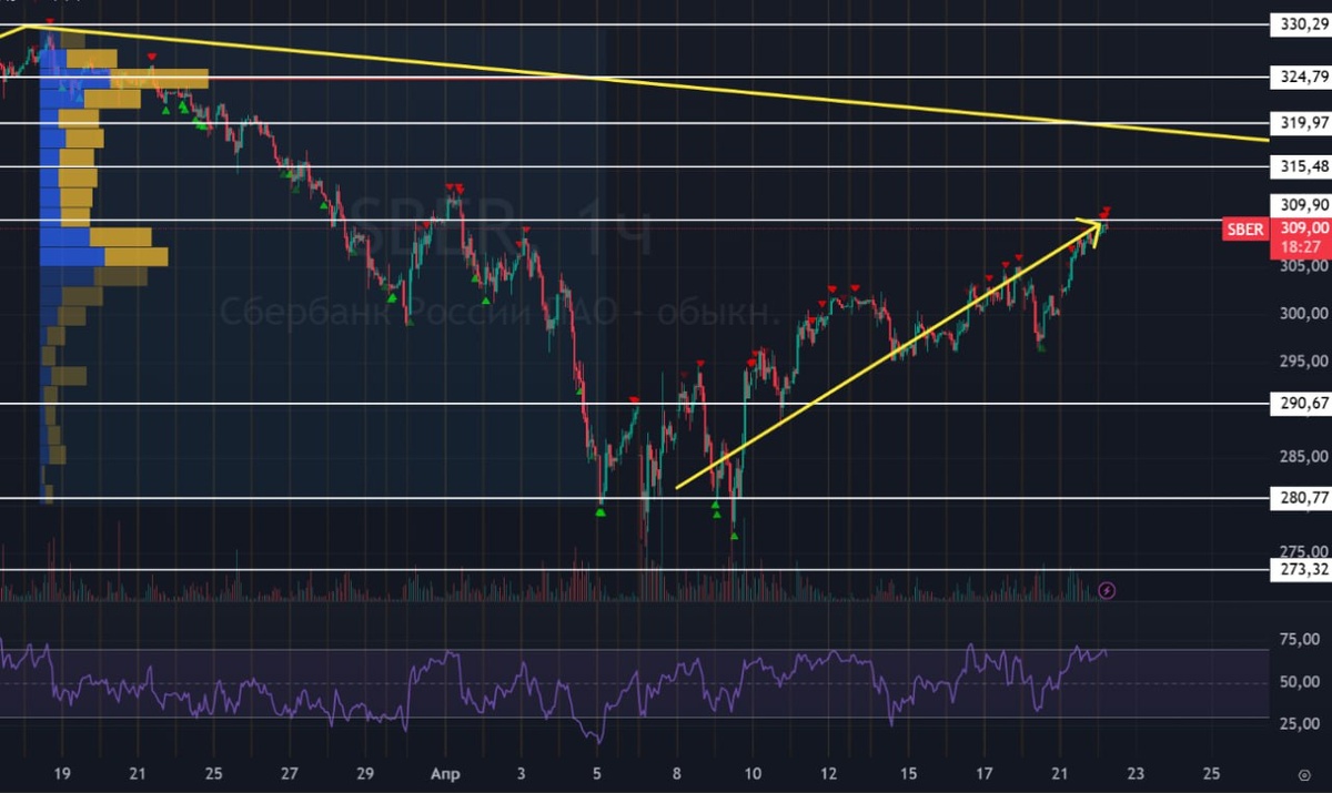 🏦 #Сбербанк #SBER #Сбер #bogdanoffinvest 🟢 Цели отскока выполнены! Сам я не досидел, хотя был покупателем фьючерса на Сбер от дна. Ликвидность съели на текущем уровне. У Сбера есть еще больше ликвидности на уровне 325, но я не сильно верю, что застрявших там хомяков по хаям будут выпускать. 🚗 В целом прямо с текущих уровней буду ждать Сбер вниз. Да и не только СБЕР, а весь наш рынок. Предполагаю, что пойдет вниз после завтрашних переговоров о перемирии, в которых РФ не участвует. А так же я жду и от зарубежных рынков падения, но у них будут свои причины для этого.