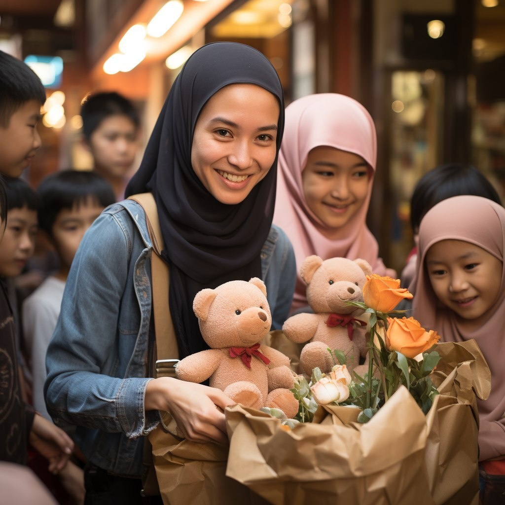 Создано на основе запроса: Exchange of gifts at a single mother's association in Malaysia