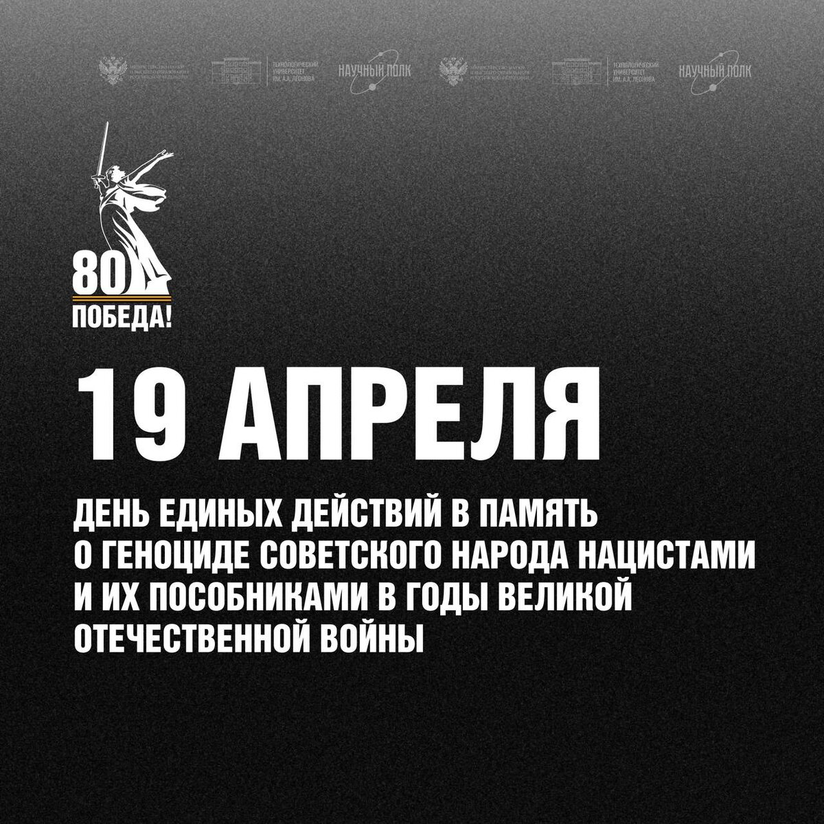 Ежегодно 19 апреля проводятся Дни единых действий в память о геноциде советского народа нацистами и их пособниками в годы Великой Отечественной войны.