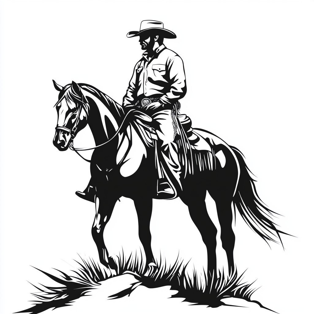 Создано на основе запроса: vector cowboy on horse side profile black stencil white background