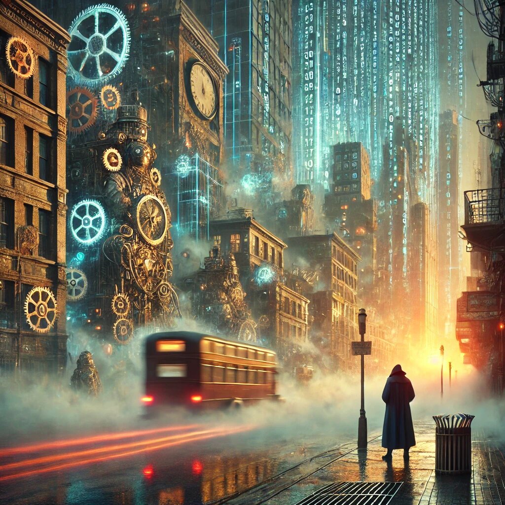 "В этом городе даже рассвет включают по расписанию. И если тебе кажется, что всё идёт по плану — значит, ты просто не знаешь, чей это план." Понедельник начался с того, что улица Моргенштейна №9 попыталась сбежать. Старая мостовая поддалась, скрежетнула гусеничными плитами и сделала шаг вправо. Вежливо, но с протестом — будто вынырнув из дурного сна. Только что-то пошло не так: огромный стабилизатор-гироскоп под фундаментом треснул, и вся конструкция просела в паровую яму. Именно в этот момент Элви Шпарк — техноархивист первого ранга — застрял между лифтовыми шахтами в подвижном вагонете "Гретта-4", размышляя, пойдет ли сегодня кофе по скидке, если центральный кибернетический рынок завис из-за протечки эфира. Понедельник. В Бронзеграде они были особенные. Не просто тяжёлые — хищные. Город вздыхал паром, скрипел рычагами и выдыхал сплетни через провода. Бронзеград никогда не спал. Даже в три часа ночи здесь могли начаться выборы или революция — в зависимости от сбоя в центральной сети.