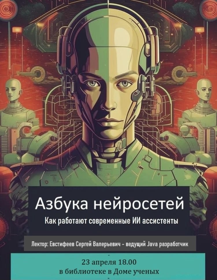 🗣23 апреля в 18:00 в библиотеке №7 в Доме учёных в Обнинск пройдёт лекция «Азбука нейросетей