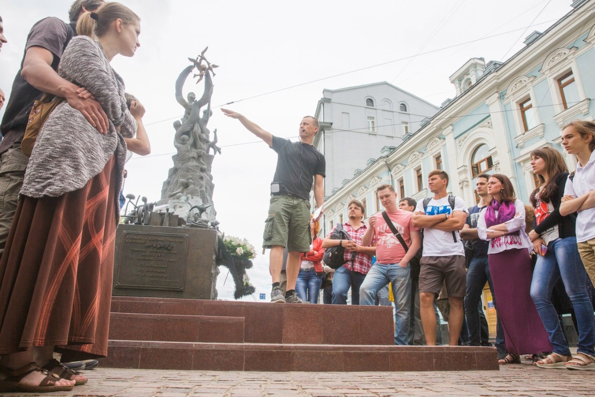 Мое единственное фото с творением Церетели. На заднем плане памятник «В память о жертвах трагедии в Беслане». В 1996 году храм Рождества Пресвятой Богородицы на Кулишках, перед которым он был установлен, передали московской осетинской общине и он стал известен как Аланское подворье. Отсюда и памятник. В народе церковь зовут просто - Богородицы, что на Стрелке, поскольку он стоит на остром углу Солянки и Подколокольного переулка, по которому вы попадаете в бывшую Хитровку.