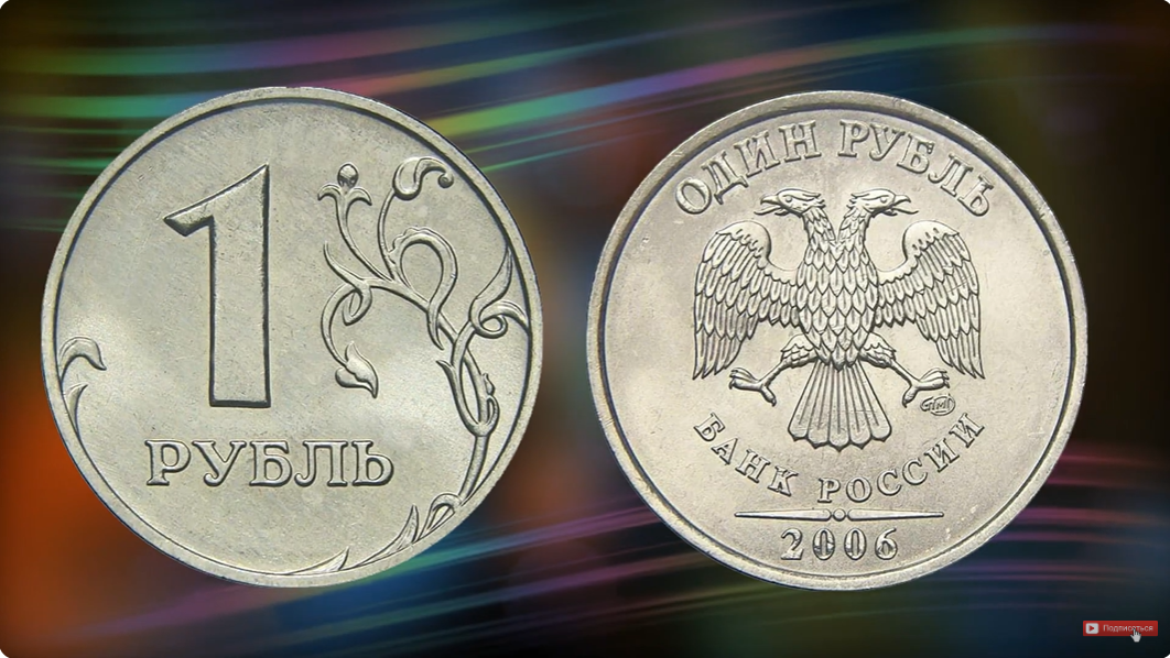 Друзья, всем привет! Вы на канале «21-й век: о стоимости редких монет». Сегодня, по просьбе одного из наших подписчиков, я расскажу вам о монете один рубль 2006 года. Вы узнаете о четырёх разновидностях этой монеты и научитесь быстро и легко их отличать. Всего у этой монеты четыре разновидности. Из них, две отчеканены на Московском монетном дворе, и две на Санкт-Петербургском. Отличить, на каком монетном дворе отчеканена монета, можно по монограмме монетного двора. Она расположена под лапой орла. Посмотрите и запомните! Вот так выглядят монограммы разных монетных дворов. Монограмму еще называют «клеймом монетного двора». Эта информация для начинающих нумизматов. Итак, вы уже знаете, как отличать московскую и питерскую чеканки этой монеты. Давайте рассмотрим, в чем разница двух разновидностей питерской чеканки. Нужно посмотреть на реверс монеты. А точнее, на правый верхний лист. Перед вами детализированная картинка двух разных реверсов этой монеты питерской чеканки. Название штемпеле