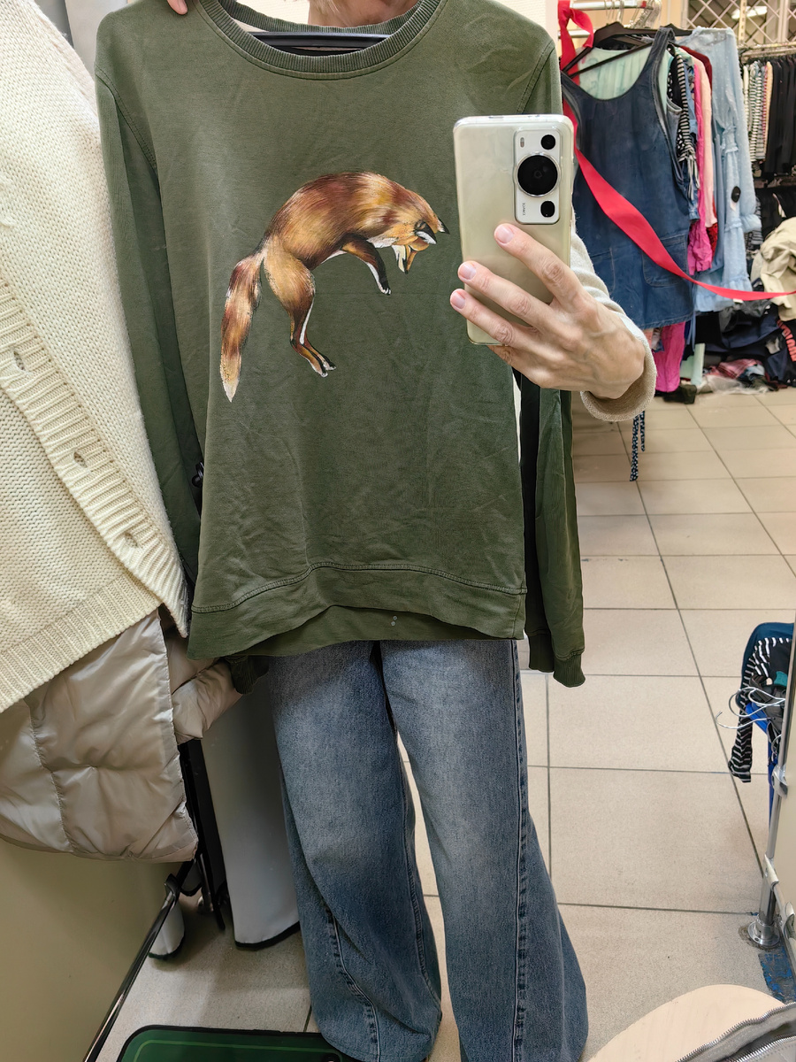 Добрый день, меня зовут Тоня и сегодня я забежала на последнюю скидку в этом цикле продаж - всё по 100 рублей. Посмотрим, что осталось и что можно выбрать из предложенного. Конечно, все мы понимаем, что это остатки, все самое лучшее и интересное уже давно купили, но мы, вооружившись надеждой и хорошим настроением, все же пройдем по магазину. Спойлер - я даже совершила покупку. 😁 Итак, начинаем. Свитшот из хлопка с лисичкой, в идеальном состоянии, кто носит такие вещи, будет рад, думаю. Милый, цвет и принт симпатичные. Премиленькое пушистое болеро цвета фуксии с ангорой в составе. Блуза из вискозы от дорогого немецкого бренда Luisa Cerano. Пятно на самом видном месте, в остальном в хорошем состоянии. Знаю, что некоторые не боятся брать такие вещи на максимальной скидке, пробуют вывести пятно. В принципе, сейчас есть очень хорошие пятновыводители, почему нет. Это точно оригинал, мне она понравилась - интересная фактура, широкие рукава 3\4 всегда комплиментарно смотрятся. Этот
