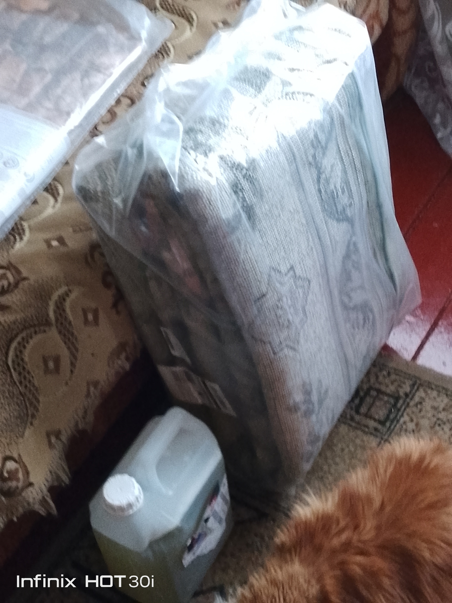 Упаковано всё прекрасно. Ковер начала расстилать, чтобы облежался. Как всегда Амельсина помогает мне, без её поддержки никуда! 😻😹😻