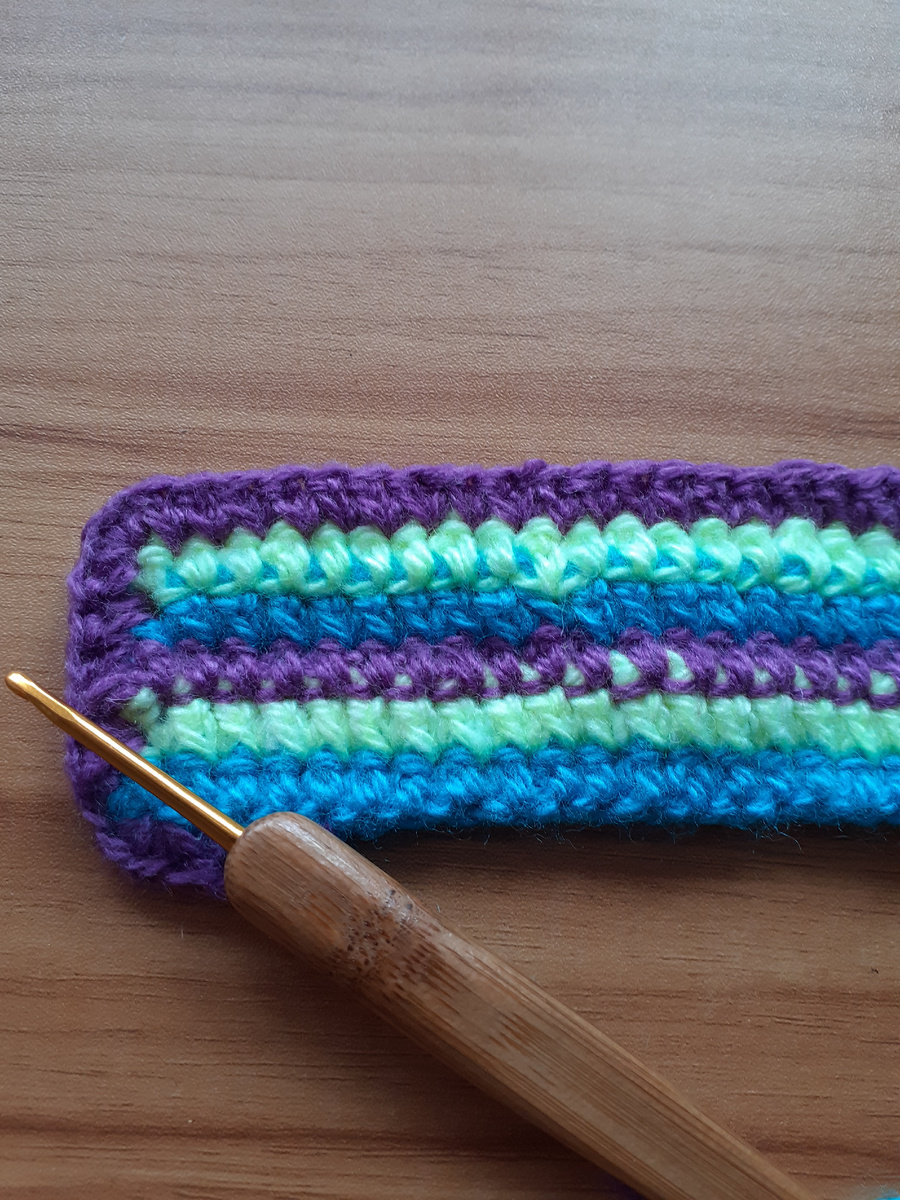 Вяжется не сложно . Набираем цепочку из воздушных петель нужной ширины , по размеру предполагаемого коврика. Вяжем поворотным вязанием узор получается одинаков с обеих сторон. В узоре всего один ряд. Очень красиво получается когда вяжем из пряжи разного цвета. Используем нечетное колличество цветов пряжи. Удобно вязать из трёх. Один цвет в работе ,два других - нити по сторонам и меняем цвет нити в каждом ряду. Вяжем узор я назвала укреплёнными столбиками без накида. Вначале цепочка из воздушных петель. Начиная со второй петли от крючка вяжем простой столбик без накида. Далее крючок вводим в эту же вторую петлю , достаём нить ,на крючке 2 петли , крючок вводим в следующую петлю , достаём нить. На крючке 3 петли. Затем провязываем через 2 петли и через 2. И повторяем. В конце ряда укрепленый столбик довязываем нитью другог цвета , то есть последний раз через 2 петли другой цвет. Нить прежнего цвета не отрезаем оставляем сбоку. Начало следующего ряда 2 воздушные петли , простой стол