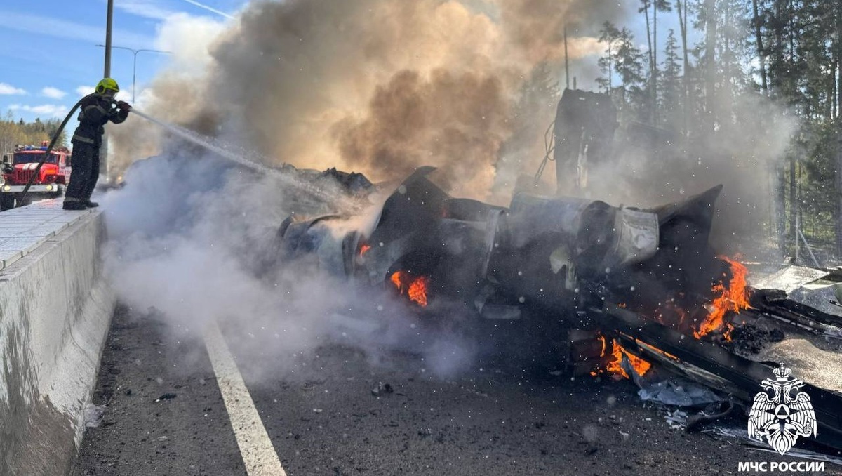 Ранее мы писали на ТИА, что сегодня днём на 195-м километре трассы М-11 "Нева" в Калининском округе произошло серьёзное ДТП. Из-за аварии движение в сторону Москвы было перекрыто, организован съезд на 208-й километр на М-10 "Россия". Позже в Госавтоинспекции Тверской области прокомментировали инцидент. По данным ведомства, произошло столкновение трёх транспортных средств. У фуры Mercedes Actros, которая ехала по левой полосе, взорвалось колесо. В результате произошло боковое столкновение с фурой SITRAK, которая ехала по правой полосе и перевозила экскаватор. После этого большегруз SITRAK столкнулся с легковушкой OMODA, которая ехала впереди. После столкновения оба большегруза загорелись. В результате ДТП пострадал 41-летний водитель фуры Mercedes. "На месте работает скорая. Автомобиль Mercedes сгорел. Признаков алкогольного опьянения у водителей нет", - отметили в ГАИ. Сотрудники регионального МЧС ликвидируют последствия ДТП. На месте работают сотрудники ПСЧ-72 и СПСЧ. Как сообщили в п