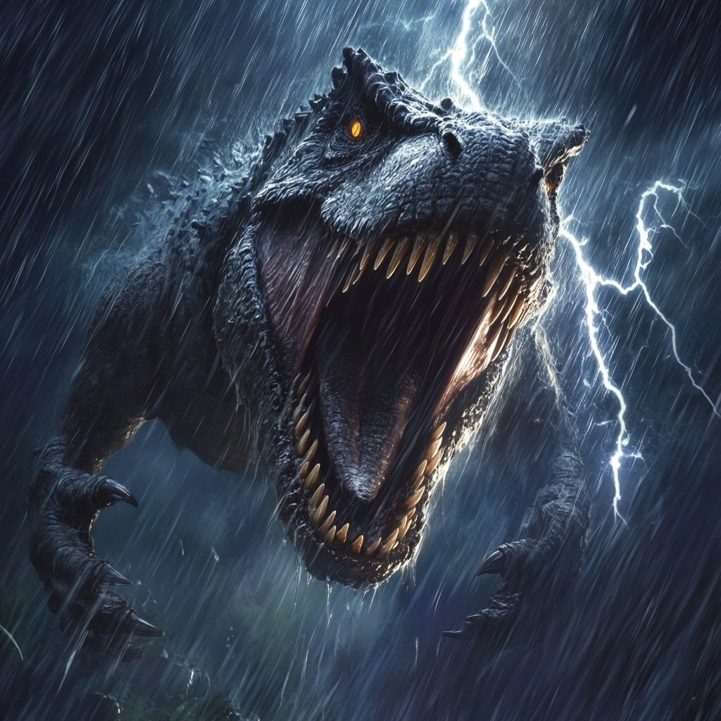 Создано на основе запроса: undead trex. Dramatic, lighting epic rain.