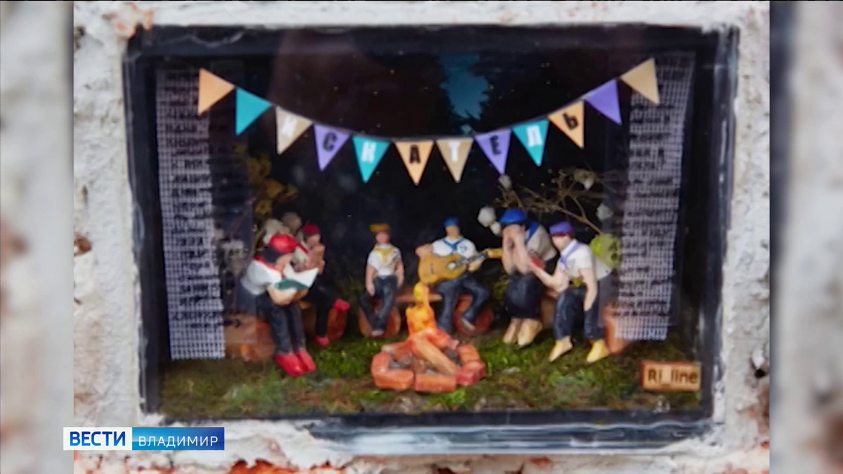 Искатель - лагерь для одаренных школьников региона. Разговоры и песни под гитару возле костра - то, что любят и с особым теплом вспоминают его воспитанники. Для миниатюры художники использовали дерево, мох, цветы, ткань, пленку - всё, чтобы передать уютные ощущения тех самых времен.