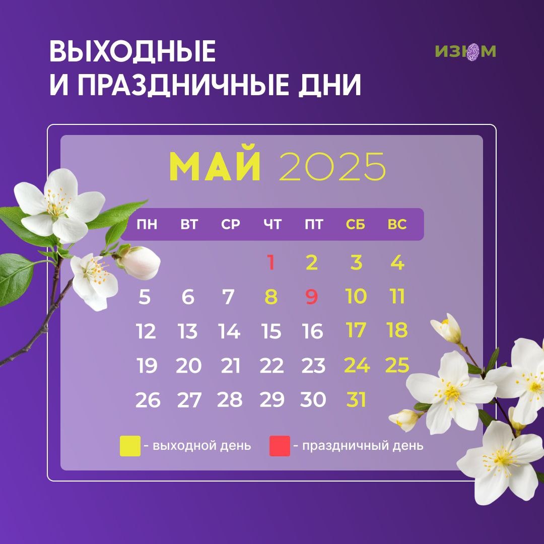 ✅ Первый выходной период начнется 1 мая и продлится до 4 мая, что сделает следующую рабочую неделю трехдневной.