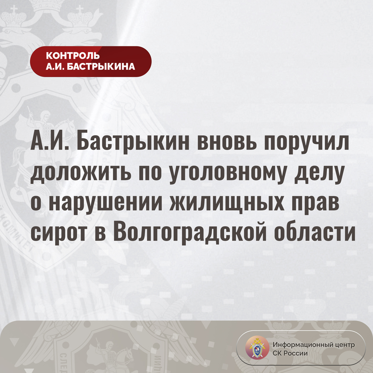 А.И. Бастрыкин вновь поручил доложить по уголовному делу о нарушении жилищных прав сирот в Волгоградской области