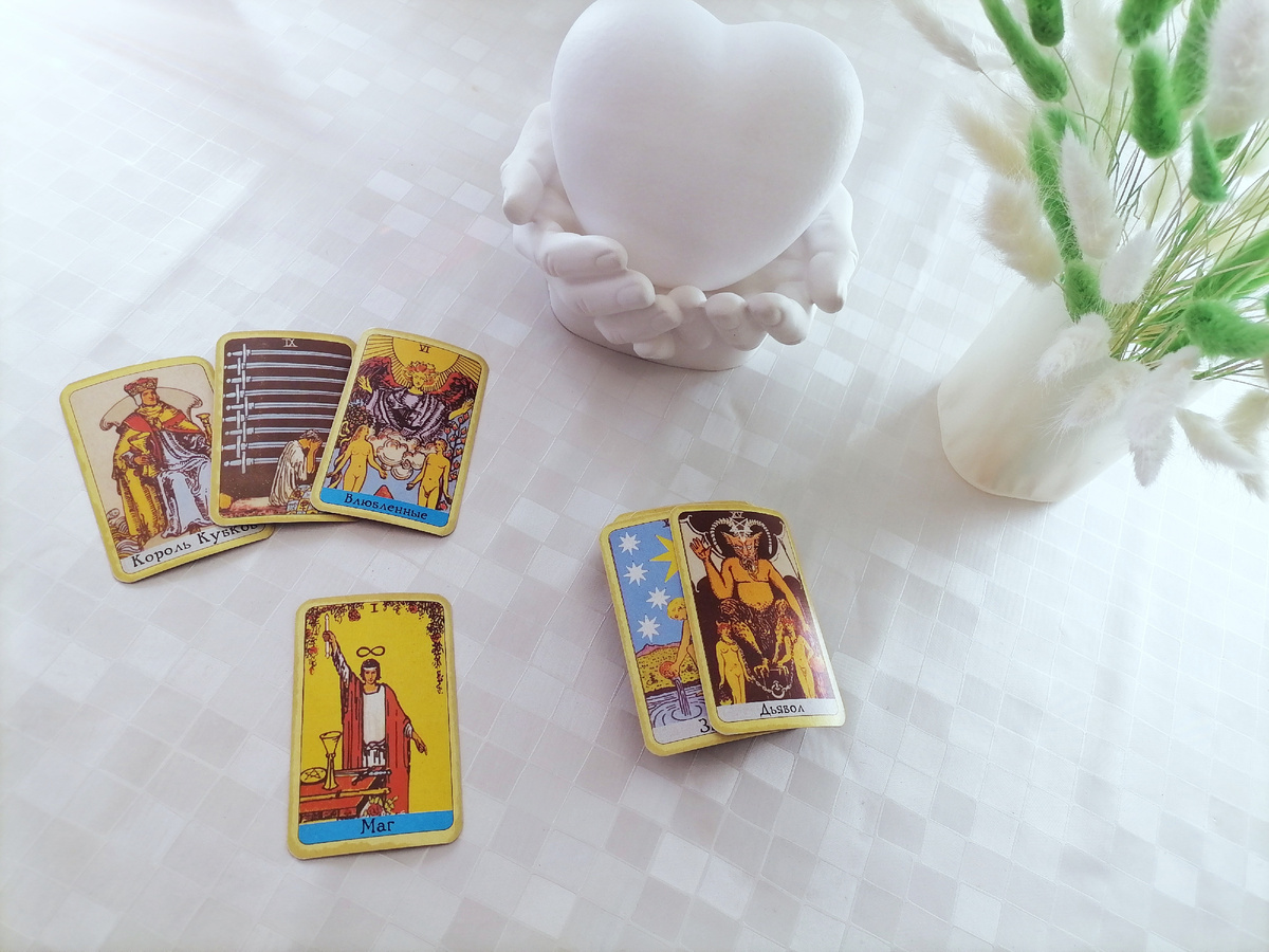 Спойлер: Он может стать для вас не просто любимым человеком, но и вашим мужем. Сама судьба вас приводит к этому, чтобы вы были вместе и радовались каждому дню и ночи, проведённых с ним. Но обо всём по порядку... Перед вами общий расклад. Это значит, что прогноз/ситуация может проиграться/реализоваться абсолютно полностью, либо частично, либо не реализоваться в вашей ситуации вовсе. Совпадения могут быть случайны. Однако, некоторые расклады действительно могут вам резонировать. Кто знает - может именно этот расклад предназначен Вам? Итак, Что идёт у тебя дальше по судьбе? Выпадают Король кубков, 9 мечей, влюбленные. Ой, ой, ой… Ну видно же, что некий Король будет по тебе страдать, скучать и ночами не спать. Чувства у него так заиграют, аж будет казаться, что сердце выскакивает наружу. Человек настолько сильно привяжется к вам, что будет ощущать эту тягу. Намного сильнее, чем вы можете себе это представить. У этого мужчины действительно наступает светлая полоса в жизни в лице вас и в