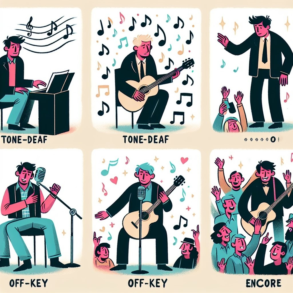 🎵 Фразы о музыке 🎵 "To be tone-deaf" - "лишенный слуха" - это когда человек не различает музыкальные ноты и не может петь в тон. "Harmony" - "гармония" - когда разные музыкальные звуки сливаются и звучат приятно. "Off-key" - "мимо нот", "фальшивый" - когда кто-то поет или играет не так, как должно быть по нотам. "Jam session" - "музыкальный джем" - когда музыканты собираются вместе, чтобы играть спонтанную музыку. "Encore" - "бис" - возглас публики на концерте, когда она просит музыкальный номер на повтор. Пример: "During the concert, the audience asked for an encore." "Во время концерта зрители попросили номер на бис."