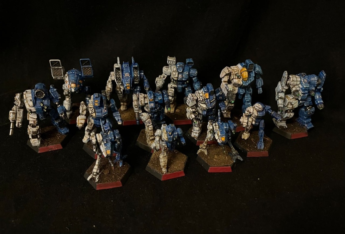 Набралось покраса мехов иp BattleTech 🎨 С этой прекрасной вселенной познакомился поиграв в игру MechCommander. Было это так давно, что уже и не помню, какая была часть. Вроде вторая... Очень захватила игра,проходил много раз, но совершенно не понимал сюжет. Какие-то кланы, мехи Дэвиона, Ляо, отличал только по цветам. Спустя года игра затерялась и про батлтех как-то позабыл. Но пару лет назад увидел в хоббигеймсе стартер, на котором красовались знакомые с детства мехи и подумал - пора постигать базу 🌡 Закупил, открасил, даже нашел с кем сыграть и просто О Ф И Г Е Л, на сколько это крутая штука! ☄️Мехи ощущаются абсолютно реальными, живыми! Нагрев, броня, закачки, контейнеры с боезапасом, тоннаж, взаимодействие с ландшафтом, уаааау!!! Был шокирован, игра покорила! Ну и вот, перед вами Lyran Commonwealth. К просмотру 👀 #battletech #thunderbolt #griffin_mech #catapult #wolverine_mech #warhammer_mech #shadow_hawk #battlemaster #mechwarrior #Commando #Locust #Phoenix_Hawk #Atlas #command