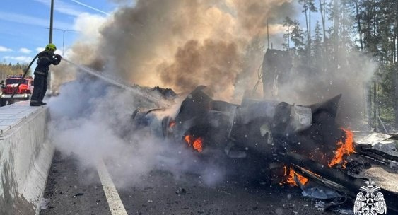 МЧС показало кадры горящих фур после ДТП с 2 пострадавшими под Тверью