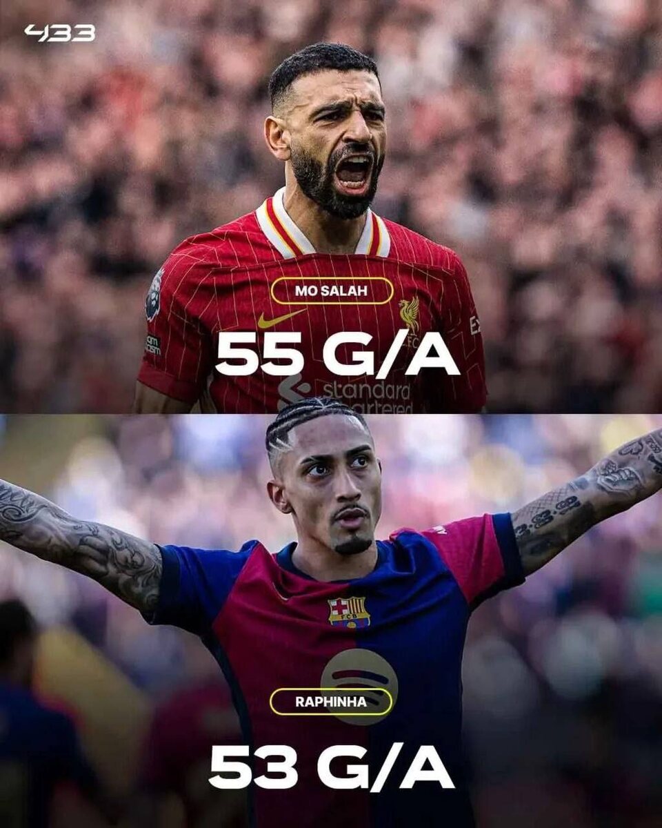 👑📊Салах и Рафинья — игроки «в топ-5 лигах, сделавшие более 50 результативных действий.