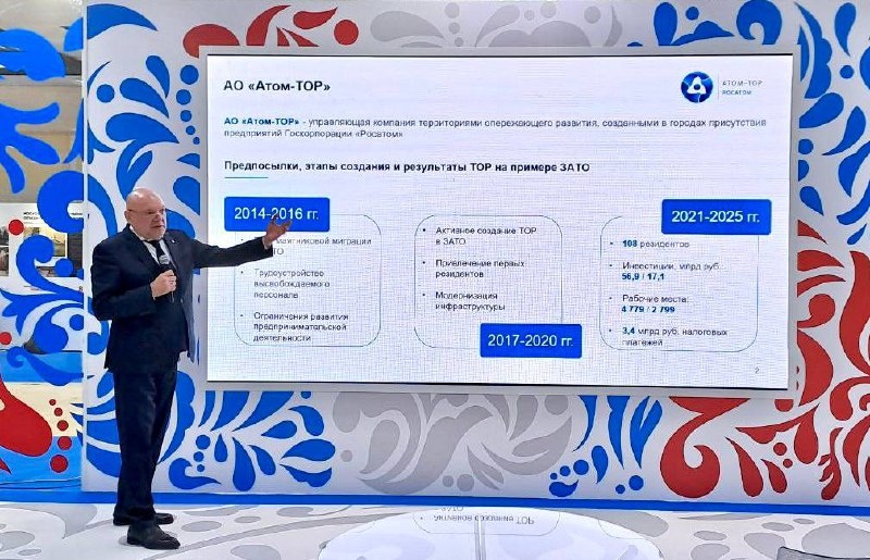 «Атом-ТОР» на форуме «Малая Родина— сила России» 🇷🇺В Москве проходит Всероссийский муниципальный форум «Малая Родина— сила России», на котором обсуждают актуальные вопросы, связанные с развитием малых территорий, местного самоуправления и социальной активности. 🗣Генеральный директор АО «Атом-ТОР» Николай Пегин в своем выступлении на панельной сессии «Развитие инвестиционного климата регионов» подчеркнул, что территории опережающего развития стали эффективным инструментом для привлечения инвестиций в муниципалитеты. «Преференциальный режим ТОР изменил восприятие инвестиционной среды закрытых городов и повысил их привлекательность для инвесторов. За несколько лет число резидентов ТОР в ЗАТО выросло до 108. Большая часть этих компаний – высокотехнологичные с конкурентной продукцией. Сегодня «Атом-ТОР» активно развивает ТОР, улучшает инвестиционный профиль «атомных» городов, их привлекательность и конкурентоспособность. Мы стали неотъемлемой частью инвестиционной экосистемы регионов