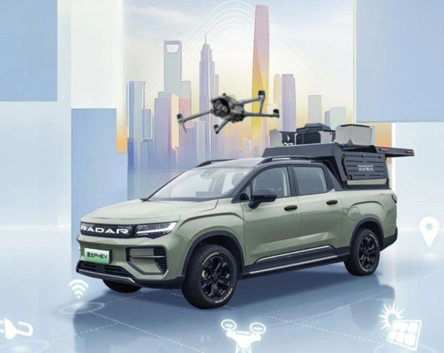На Шанхайском автосалоне 2025 года компания Geely представила один из самых необычных автомобилей выставки — Radar Super Hybrid Pickup. Это не просто пикап, а настоящий технологичный штаб на колёсах: он умеет управлять дронами, работать как источник энергии и подключаться к IoT-платформам. А запас хода у него — более 1000 км. В основе новинки лежит гибридная силовая установка Leishen EM-i и 3-ступенчатая коробка передач DHT. Она автоматически переключает режимы между бензиновым и электрическим двигателем, позволяя эффективно передвигаться и по городу, и в условиях полного бездорожья. Radar Super Hybrid — это не просто машина для перевозки. В грузовом отсеке и на крыше можно разместить: — дроны и пусковые платформы для них;