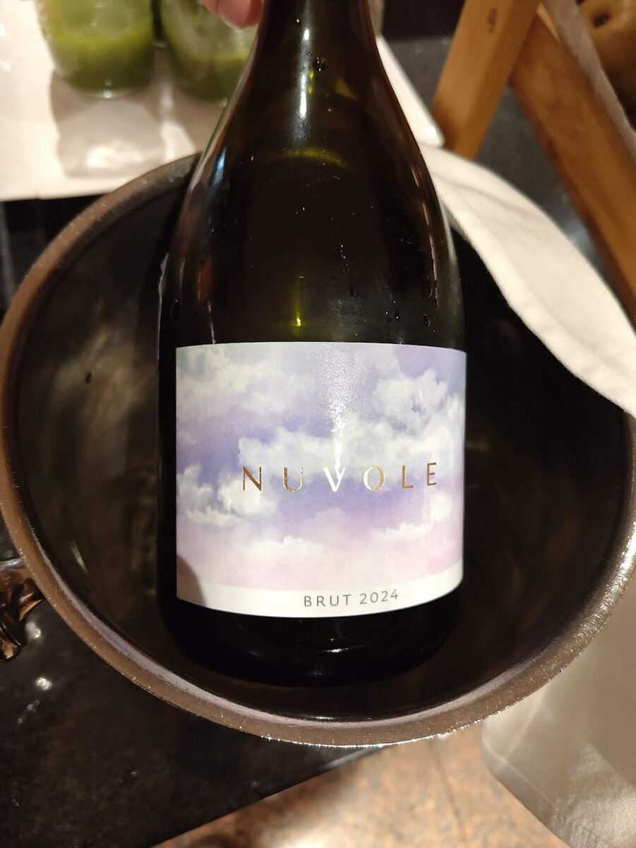 🥂 Начнём с неожиданного — в ведерке с льдом оказался Brut Nuvole 2024. Лёгкое, облачное игристое (и да, облака на этикетке — не случайность). Игристого (любого) точно не ожидал увидеть с учетом общей стоимости буфета.