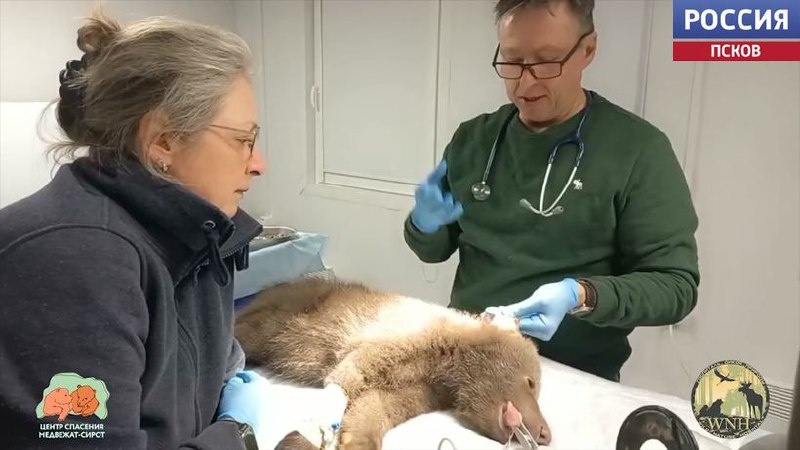 Подопечные Центра спасения медвежат-сирот в Тверской области впервые вышли на природу из домика-берлоги. Косоллапые малыши с удовольствием изучали окружающий мир, и конечно, все пробовали на вкус. Напомним, среди воспитанников центра есть и медвежонок из Псковской области - Дина. И как раз во время прогулки, специалисты центра заметили, что у нее проблемы с ухом. Поэтому подопечную оперативно доставили к ветеринару, где выяснилось, что из-за ушиба образовалась гематома. Был поврежден сосуд, из-за чего он начал кровоточить. После хирургического вмешательства ухо Дины подправили, и уже через несколько дней можно будет снять дренаж. Но несмотря на все процедуры, аппетит у маленькой медведицы отменный.