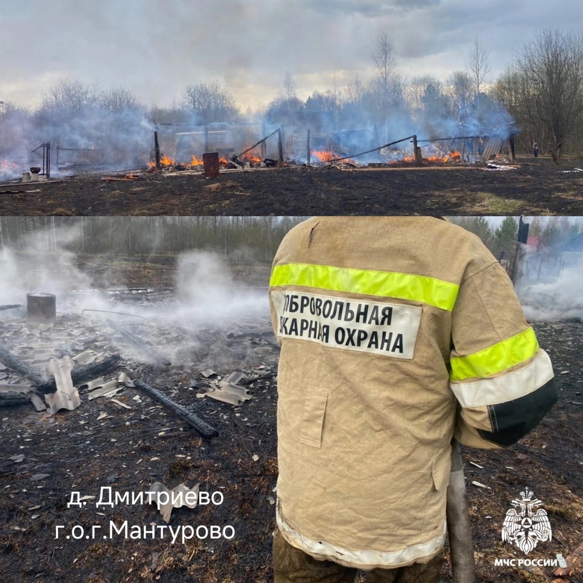 С 21 по 22 апреля областные спасатели ликвидировали семь пожаров. Первое возгорание началось 21 апреля в половину второго дня, полыхала территория частного дома в деревне Дмитриево в Мантуровском районе. В результате сгорел сам дом, гараж и баня, а также огонь полностью уничтожил хозяйскую газель. Спустя три часа сотрудники МЧС потушили пожар, его причина устанавливается.