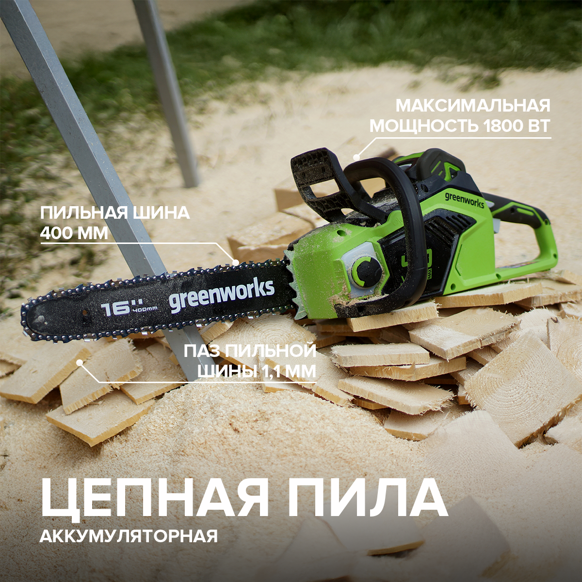 Аккумуляторная цепная пила Greenworks GD40CS18 (2005807) — надёжная и производительная техника для полноценного ведения дачного хозяйства. Мощный, надёжный и не требующий обслуживания бесщёточный двигатель DigiPro с внешним ротором разгоняет цепь до 20 м/с. Мощность двигателя — 1800 Вт. Длина пильной шины из кремнистой стали — 40 см. Смазка цепи автоматическая. Пила защищена от перегрузки и оснащена механическим тормозом цепи и предохранителем включения. GD40CS18 — это оптимальное решение для широкого спектра задач, от заготовки древесины до строительных работ. Устройство совместимо со всеми АКБ платформы Greenworks 40V. Гарантия на технику — 3 года. РРЦ: 13990 руб. Приобрести поставляется без АКБ и ЗУ.