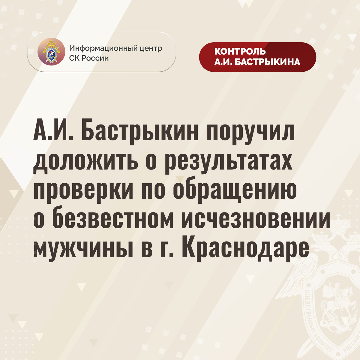 А.И. Бастрыкин поручил доложить о результатах проверки по обращению о безвестном исчезновении мужчины в г. Краснодаре
