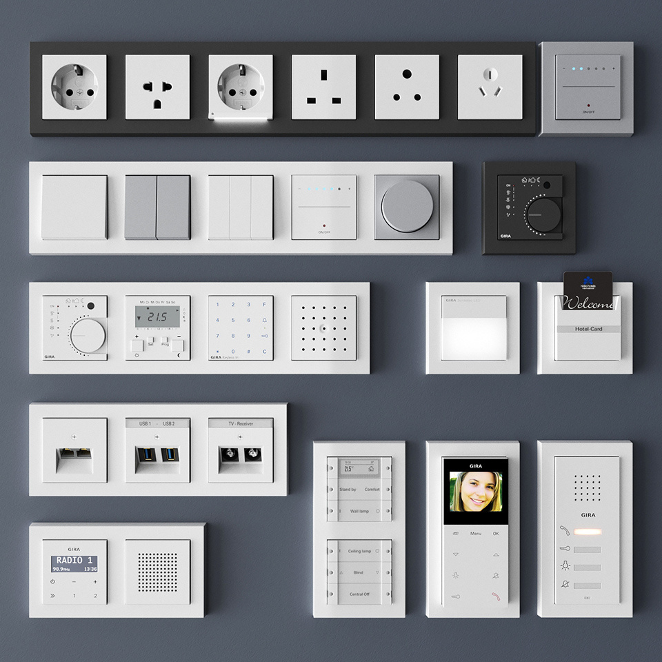 Третий и финальный материал про одну из компаний из ассоциации KNX — Gira. Сегодня поговорим про эстетику и функциональность, то есть — про то, что предлагает бренд для ваших интерьеров не только с точки зрения системы автоматизации, но и со стороны дизайна. Чаще всего на виду оказываются выключатели — именно они становятся объектом проявления фантазии и вкуса. Кто-то стремится сделать их лаконичными и незаметными, другие же наоборот — добавляют в обыденный элемент цвет, фактуру и декор. Gira подойдет для каждого из этого калейдоскопа желаний. Например, линейка Standart 55 представляет собой классический выпуклый выключатель с кнопкой, который представлен в двух оттенках глянца — белый и кремовый, а в матовом оформлении и вовсе заявлен лишь белый. Линейки E1 и E2 уже более утонченные и тонкие, отличающиеся между собой формой углов и набором возможных оттенков. Е1 представляет собой рамку с закругленными краями, возможность исполнения в матовом и глянцевом варианте. Среди цветов заявлен