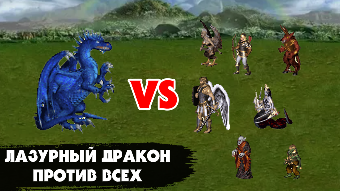 И сегодня я хотел бы провести бой между одним лазурным драконом и недельным приростом всех фракций в игре "Герои меча и магии". Посмотрим, смогут ли выстоять городские существа против мощнейшего юнита данной игры.