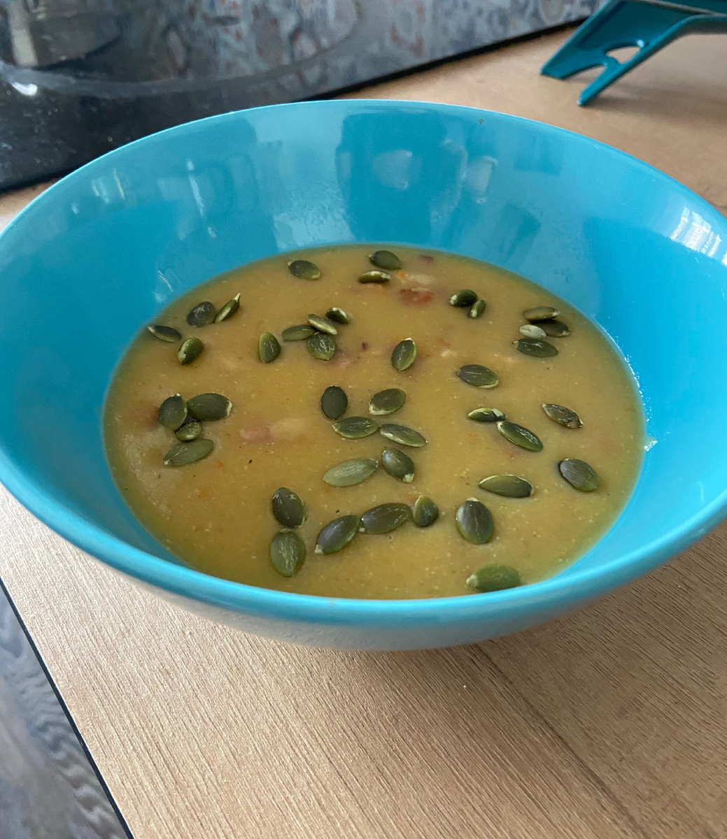 Товарищи, это бомба! С тремя видами белка. Вкусная, сытная, успокаивающая тело и душу! Делала впервые, не успела отснять пошаговый рецепт, но результат так порадовал, что решила поделиться. Итак, на 5-6 порций супа нам потребуется: 🥘чечевица красная 150-200 г 🥘картофель 1-2 шт. 🥘луковица 1 шт. (небольшая) 🥘морковь 1 шт. (небольшая) 🥘бекон 3-4 слайса или 100-150 г 🥘тыквенные семечки (для украшения) 🥘соль, перец, специи по вкусу Посчитаем КБЖУ на 1 порцию супа (220 г). Калории — 400 Белки — 24 Жиры — 27 Углеводы — 23 Буду рада, если попробуете приготовить и поделитесь отзывом!