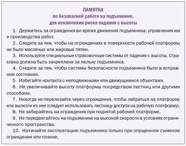 📂 Памятка по безопасной работе на подъемнике, для исключения риска падения с высоты