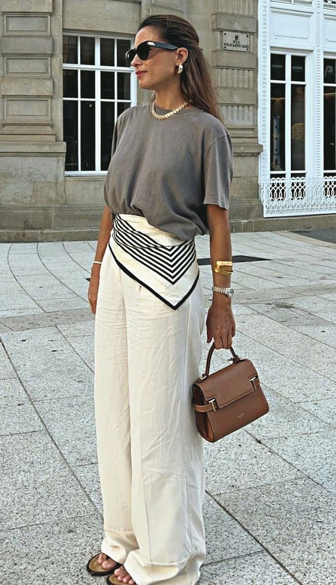 Широкие брюки из натуральных тканей. После сорока некоторые участки тела лучше деликатно прикрыть. В свободных льняных брюках в разы комфортнее, чем в шортах! Секрет в том, что между тканью и телом создается воздушная подушка, и жара переносится легче.
