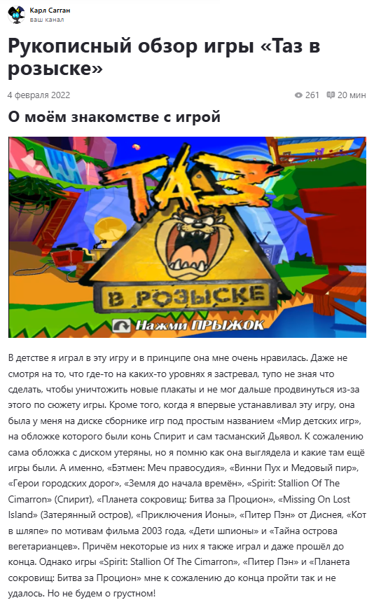 Эх, было то время, когда я написал свой первый рукописный обзор, который был обзор на игру про Таза. И я там упомянул, что эта игра была на сборнике с ещё несколькими игр и я упомянул, что я до конца прошёл только некоторые из них, но не все. И я только сейчас задумался, а почему бы мне не сделать также обзоры и по другим играм из того же самого сборника, который у меня был? Всем привет, меня зовут Карл Сагган и бегите собирать древесные звёзды, запасаясь ими вместо попкорна, потому что мы возвращаемся на Землю до начала времён! Хотя лучше вернуться в Советский Союз и не допустить его распада! И так начнём!